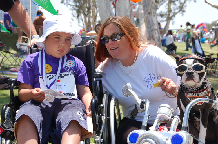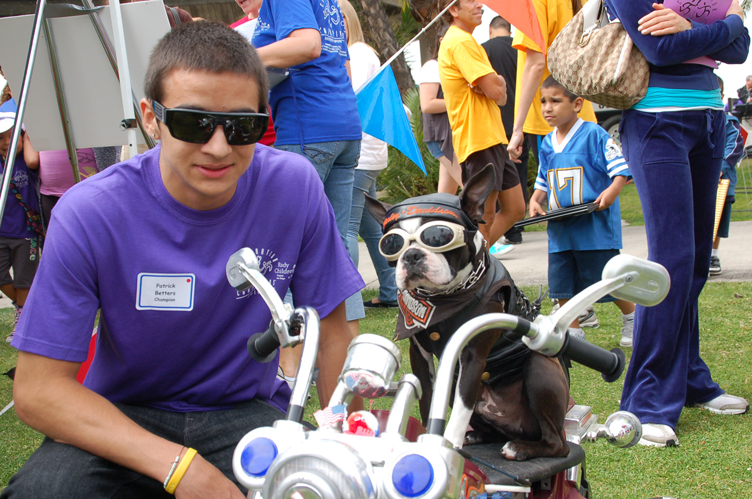 always gratifying for us to be involved. But I never lose sight of As is the case each year, Shaffer paid homage to the organization he and Chopper represented: “Once again, I want to thank motor officers Bryan Young and Bob Van Wulven of the San Diego Police Officer’s Association for inviting Chopper and me to represent "The Band of Brothers-Officer Gerald K. Griffin Jr." at the event. It's always a very humbling day for me and an absolute honor.” To learn more about this very special event and to watch a very heartfelt video/slide show, please visit: http://www.celebrationofchampions.net/ All Children in purple t-shirts are the "Champions". To see more photos, please "LIKE" me on my facebook fan page: www.facebook.com/chopperthebikerdog and view my photo albums