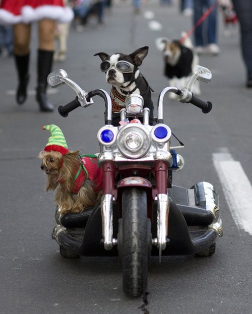 The following week-end (December 11th), Chopper participated in the 3rd Annual San Diego Gaslamp Parade. This is an event that has special meaning for both Mark and Chopper, for it was Chopper’s predecessor, “Bandit The Biker Dog” who had been announced as the Grand Marshal in the inaugural running of the parade in 2008. Sadly, Bandit fell seriously ill shortly before the event and had to pull out. Several weeks later, Bandit tragically passed away.
